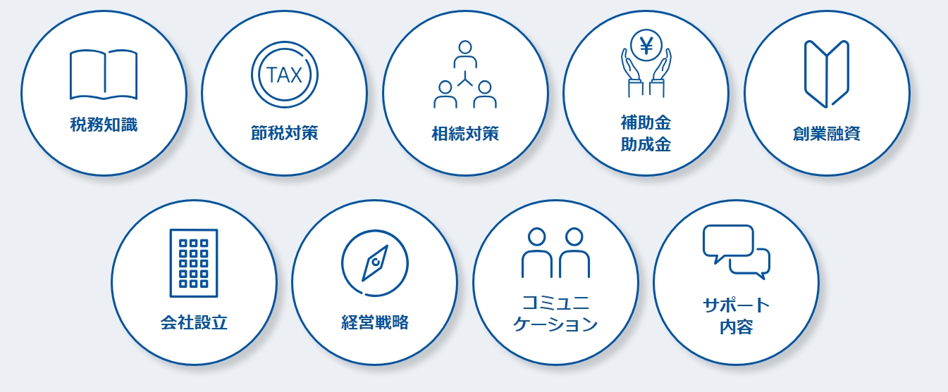 法人税や所得税、消費税、相続税、地方税など、幅広い税務相談に対応しています。